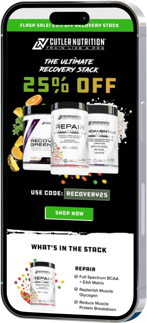 58% increase in revenue from email in 2025 for Cutler Nutrition
